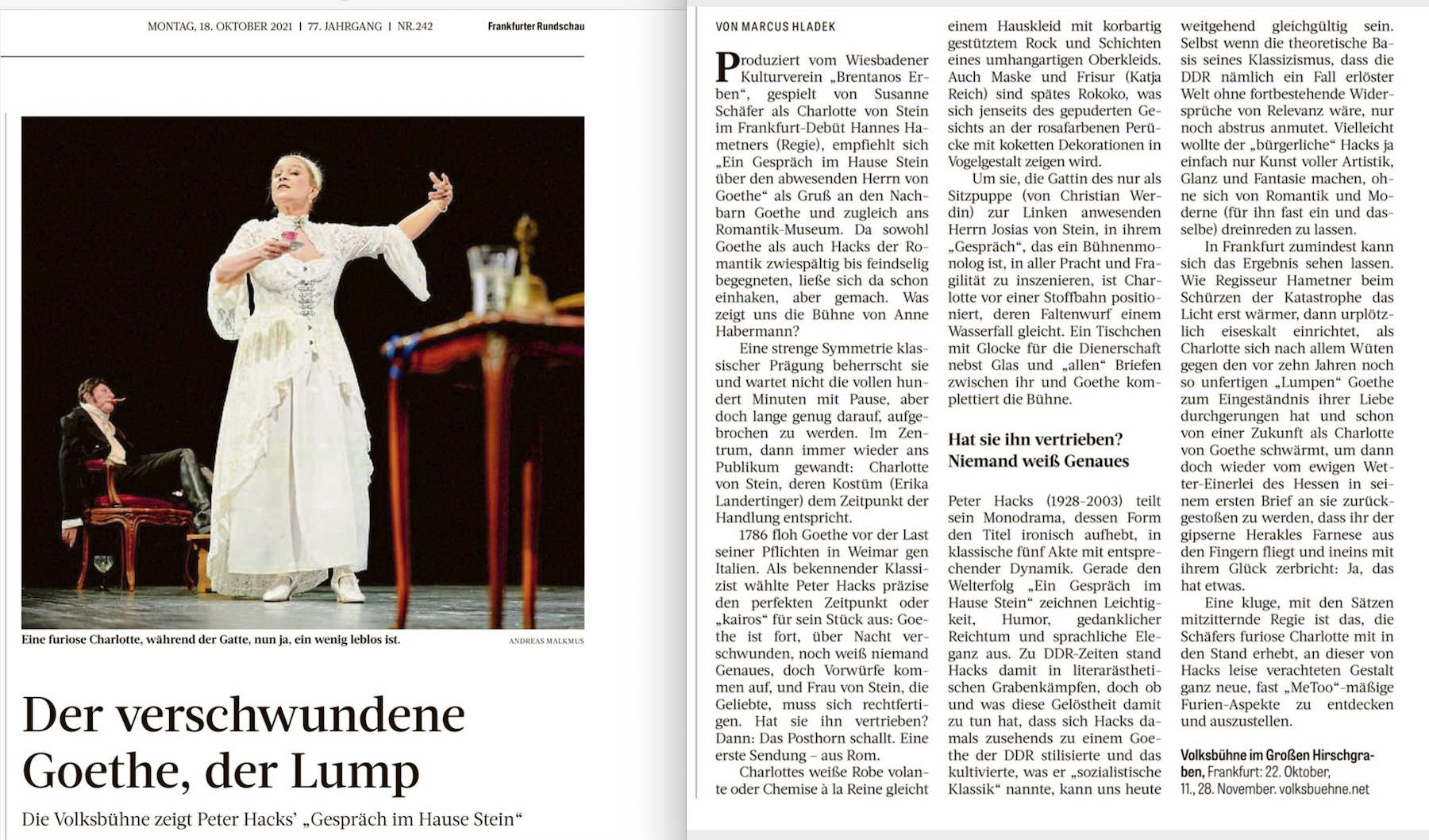Ein Gespräch im Hause von Stein über den abwesenden Herrn von Goethe