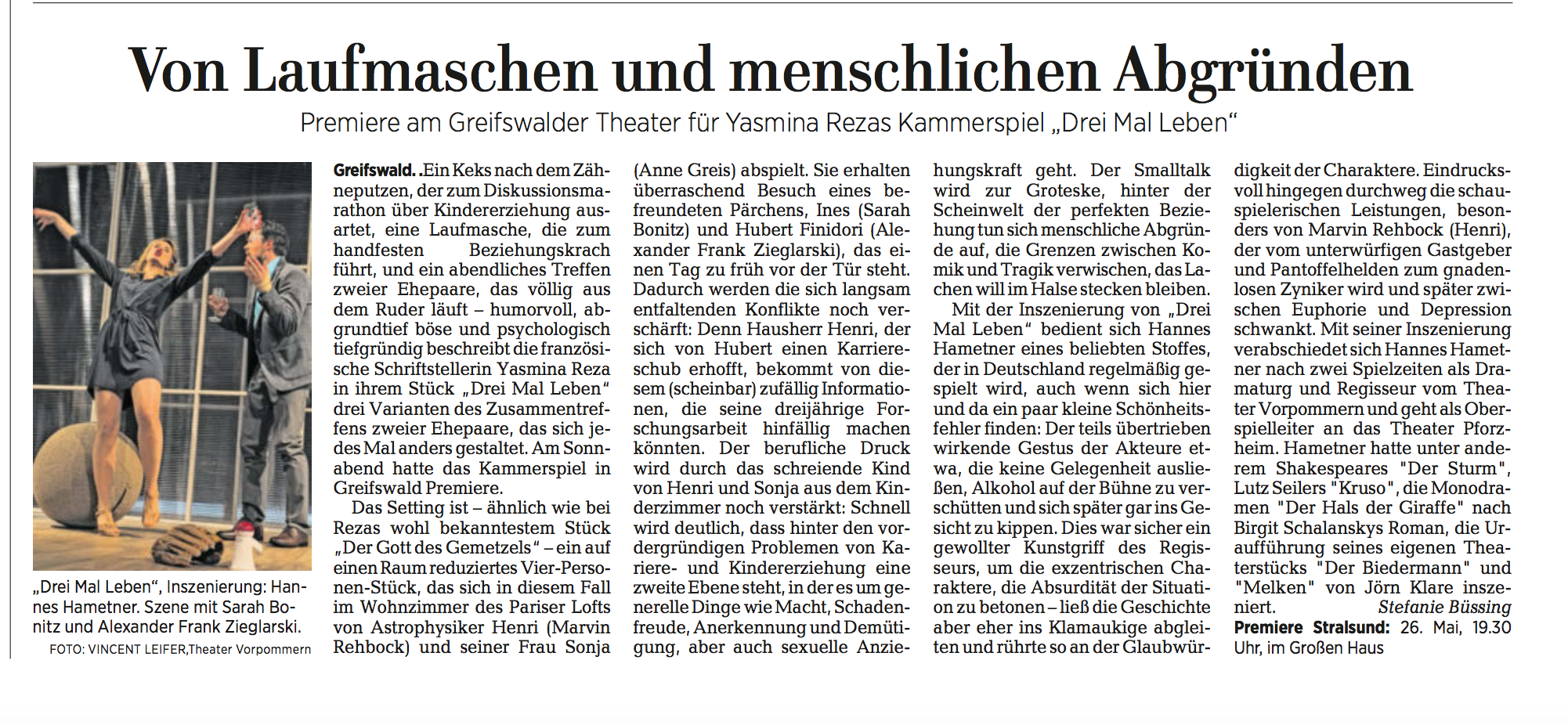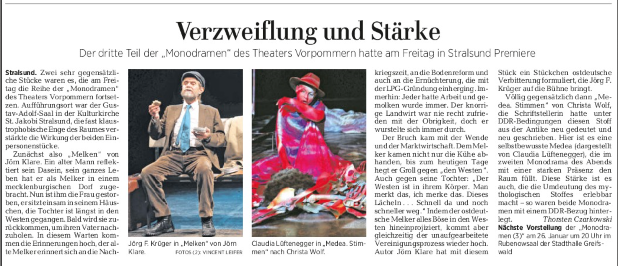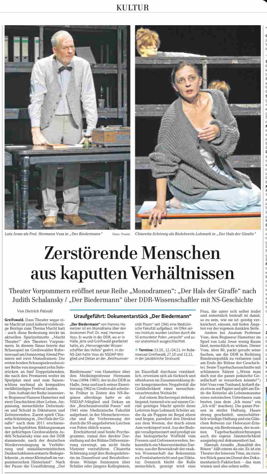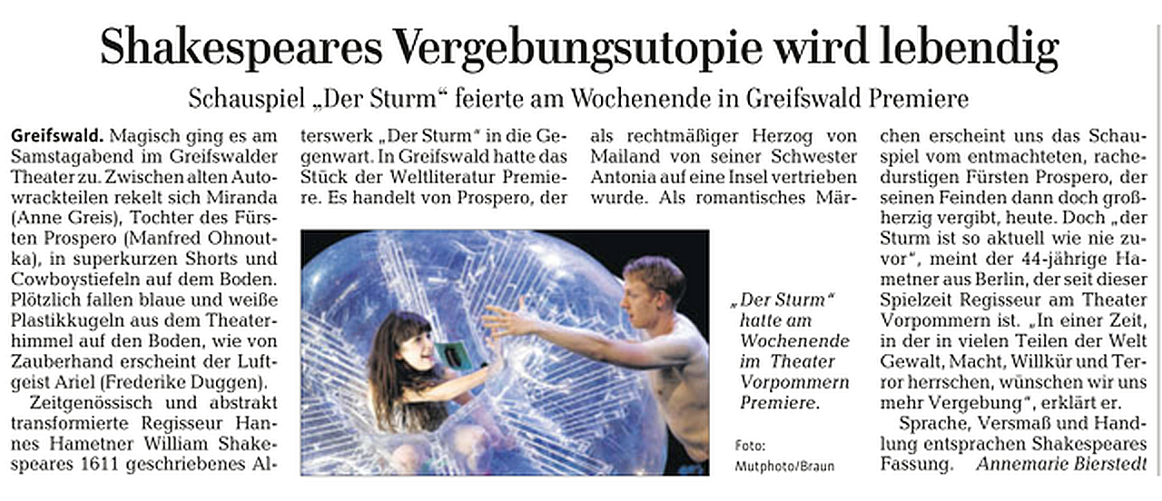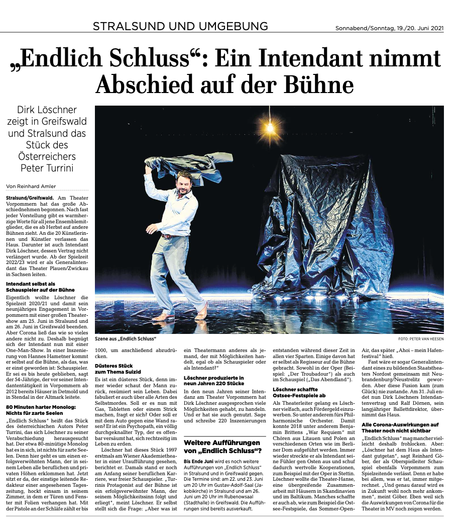 Ein Intendant nimmt Abschied von der Bühne, Ostseezeitung
