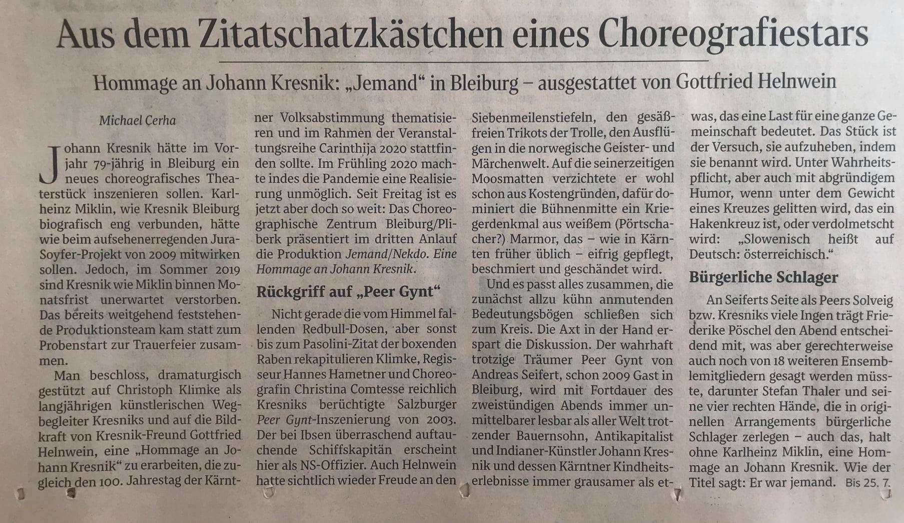 Premiere am 16. 7. 2021 Kulturni Dom, Bleiburg (Kärnten)